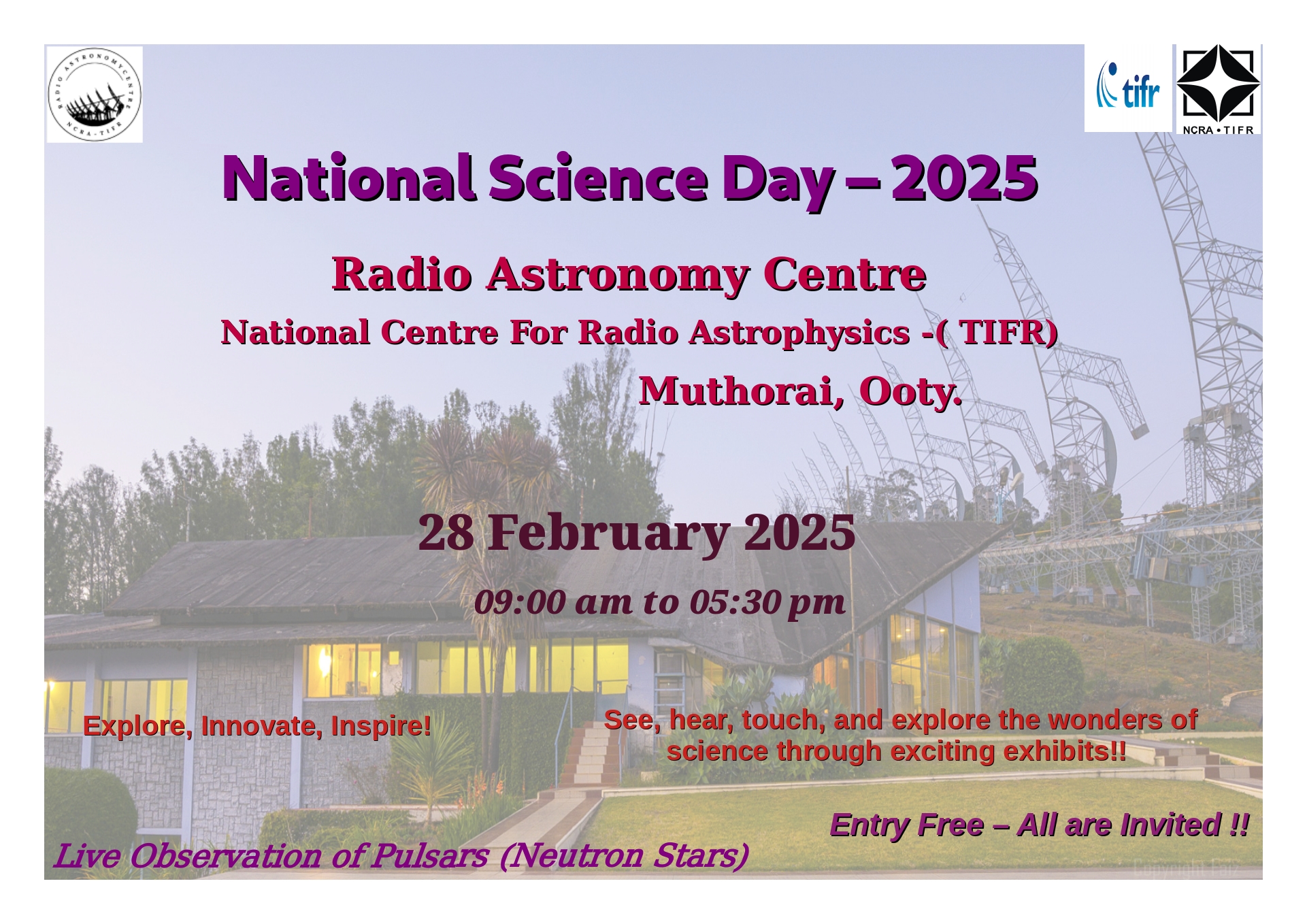 Although the prime activity at NCRA and ORT is to carry out frontline research in radio astronomy and astrophysics, and develop state-of-the-art instrumentation for this purpose, NCRA and ORT observatory also have programmes to popularise science and technology among the general public, especially the student community. The Science Day celebrations comprise a major component of our outreach programmes.